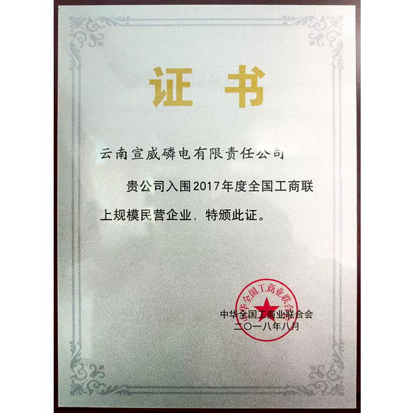 公司荣获省、市“优强工业企业”“重点骨干企业”“纳税突出贡献奖”等,连续七年评为黄磷行业“能效领跑者标杆企业”。